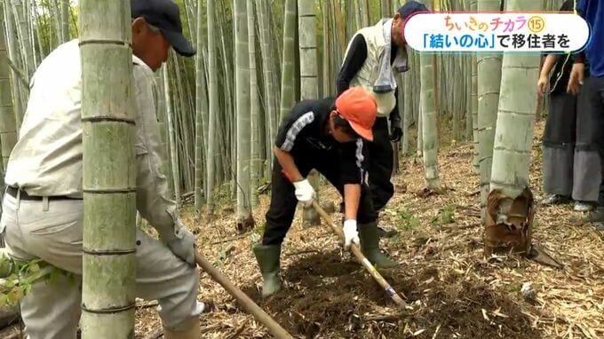 小学校の子供たちを招いてタケノコ掘りが行われました。
