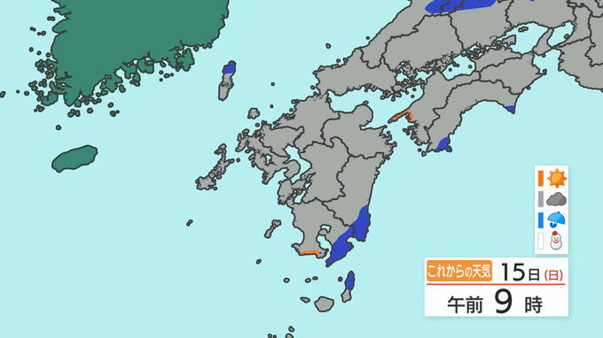 鹿児島の天気 →薩摩は明け方~朝、大隅は朝~昼前、種子屋久は明け方~昼過ぎ、奄美は朝~夕方、激しい雨のおそれ。