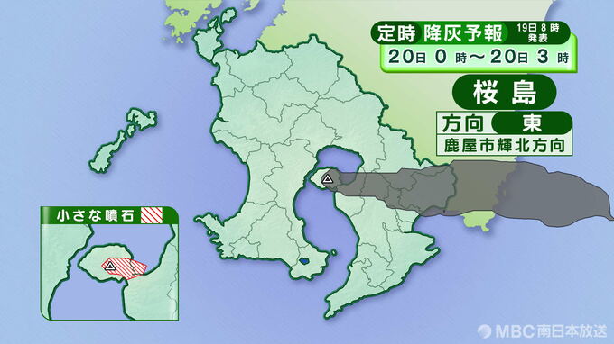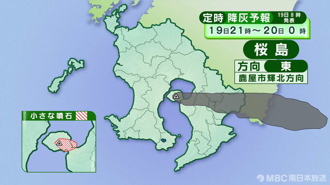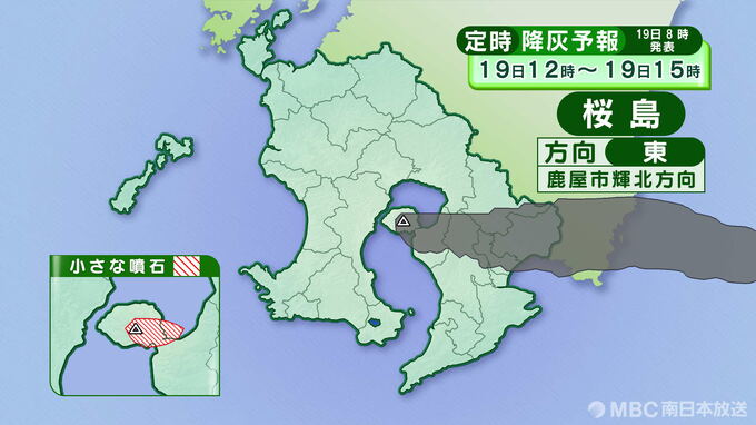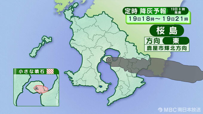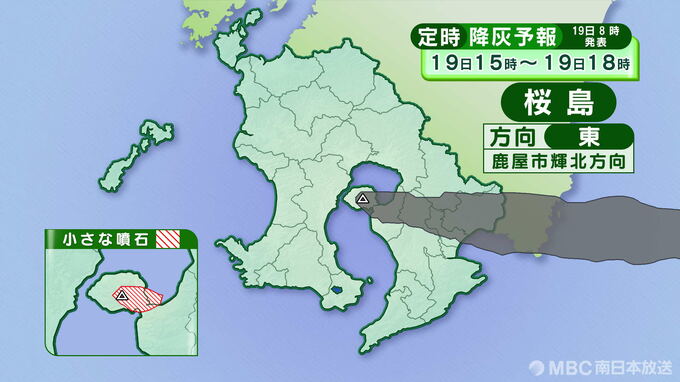 桜島の降灰予報(風向き)2023年1月19日(木) 2023年1月19日(木) 10:00 国内 桜島の降灰予報 (1月19日 午前8時発表) 現在、桜島は噴火警戒レベル3(入山規制)です。桜島で噴火が発生した場合には、19日09時から12時までは火口から東方向、19日21時から24時までは火口から東方向に降灰が予想されます。