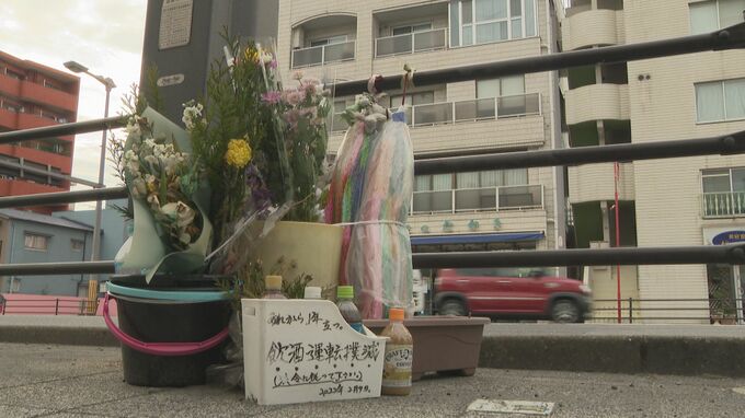 現場には、今も“飲酒運転撲滅”のメッセージと共に、花や飲み物が手向けられています。