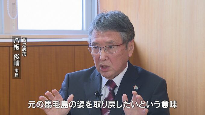 (八板市長)「(開発業者による)急激な森林伐採、開発で滑走路に造成したところがある。元の馬毛島の姿を取り戻したいという意味で使った」