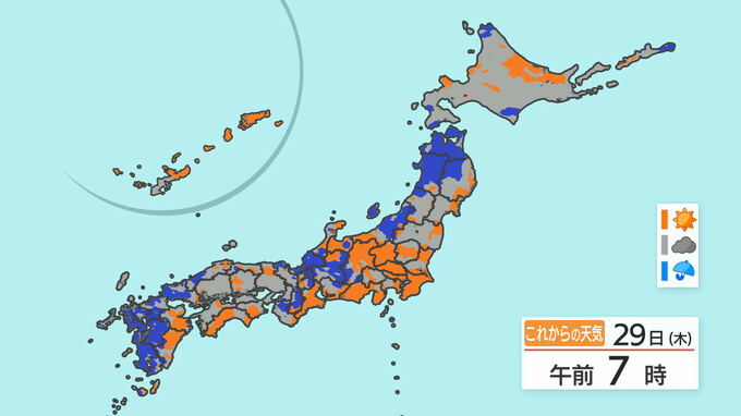 【全国の天気シミュレーション画像 29日(木)雨の時間帯は?