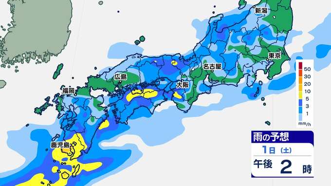 梅雨前線活発化で全国的に大雨 九州北部・九州南部で線状降水帯発生のおそれ【雨シミュレーション7月1日~2日】大雨情報