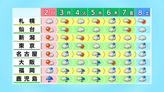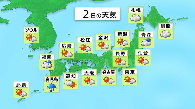 ■2日(日)の全国天気 関東の内陸部などは暑く