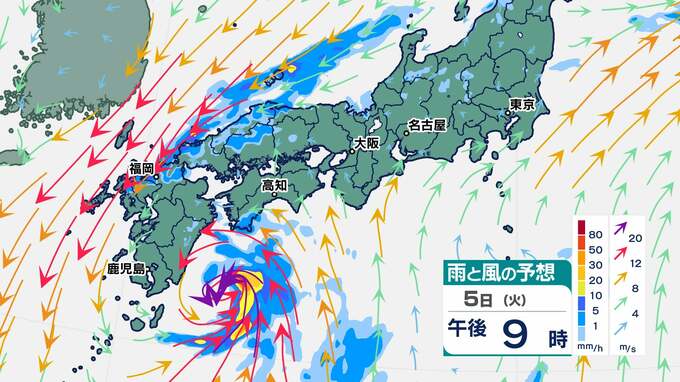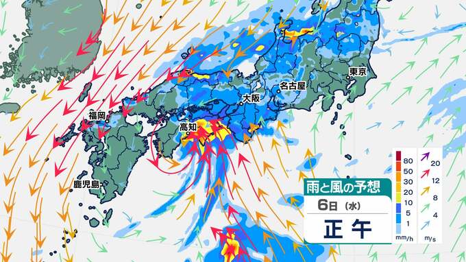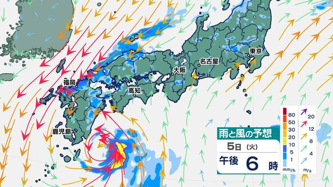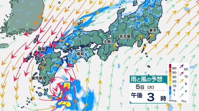 ■【連続画像】雨・風シミュレーション 5日(火)15時~7日(木)正午