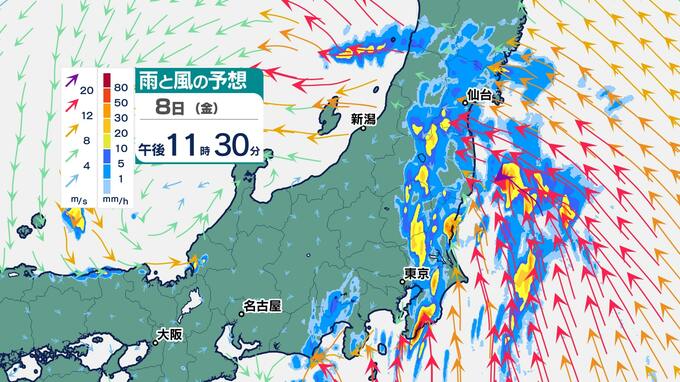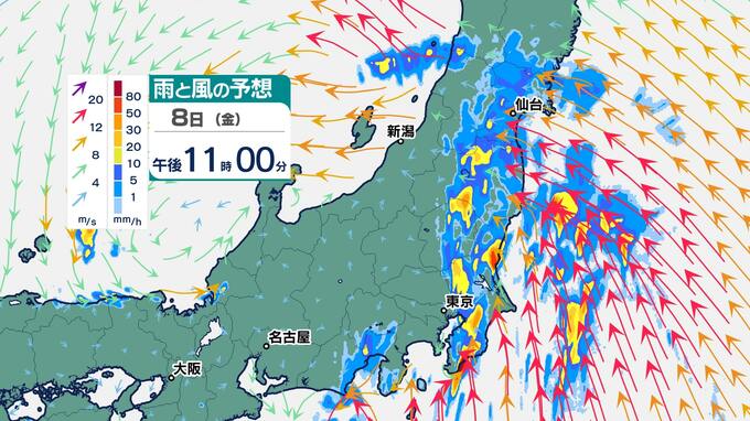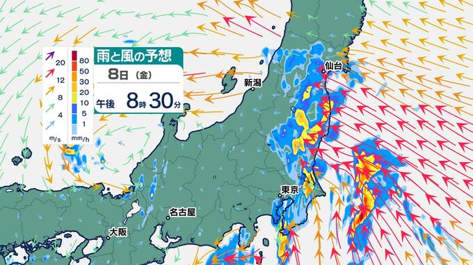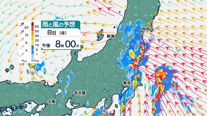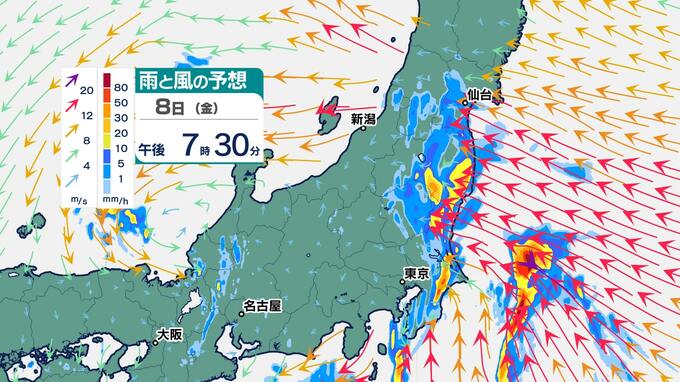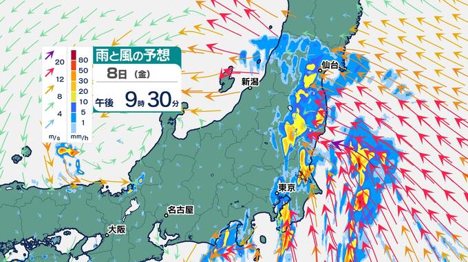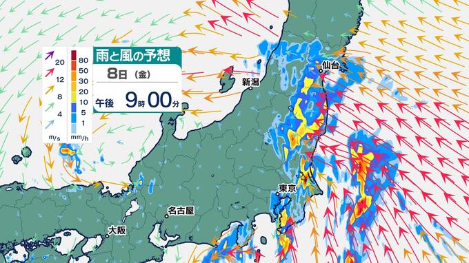 関東甲信地方や東北地方では9日にかけて、雷を伴った非常に激しい雨が降り、大雨となる所があるでしょう。