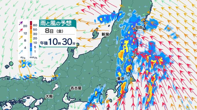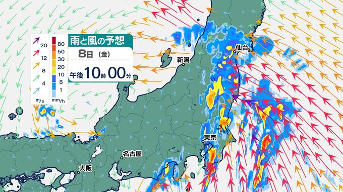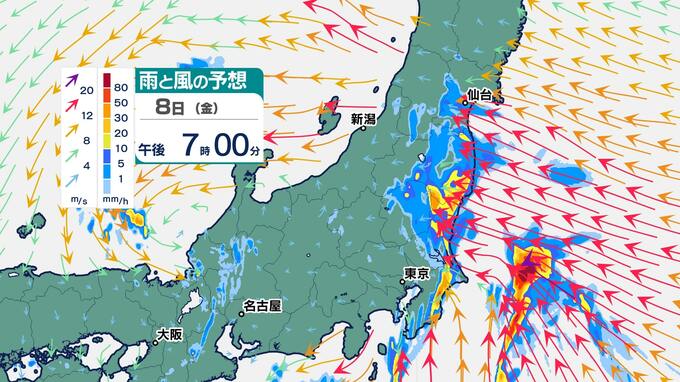 関東甲信地方や東北地方では、9日にかけて土砂災害、低い土地の浸水、河川の増水や氾濫に厳重に警戒を。