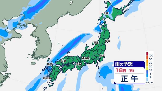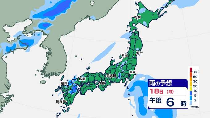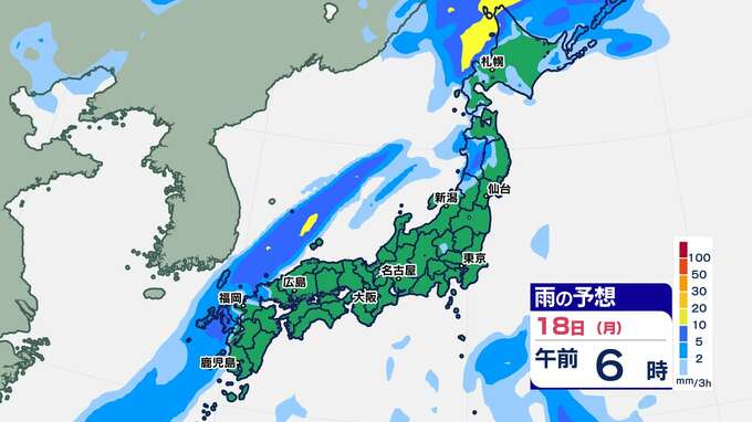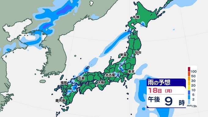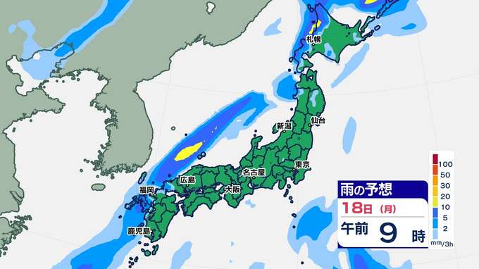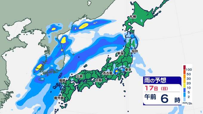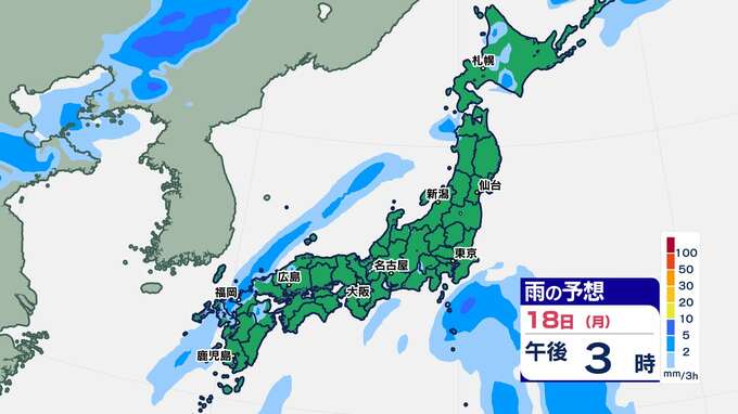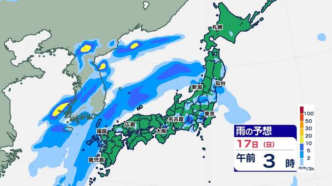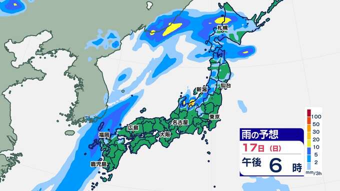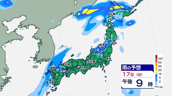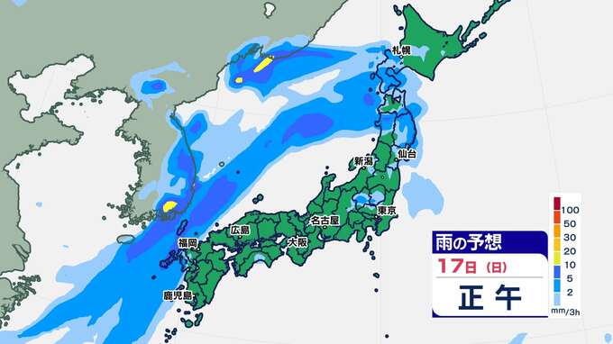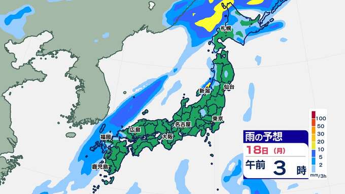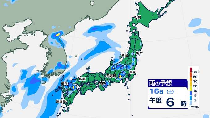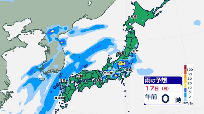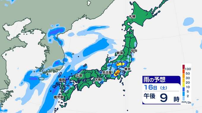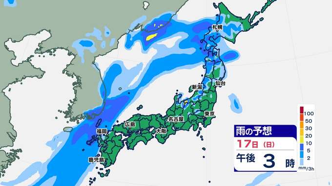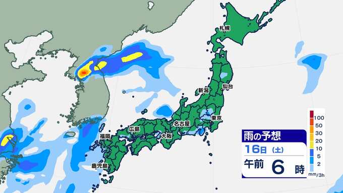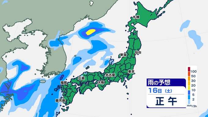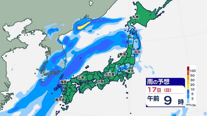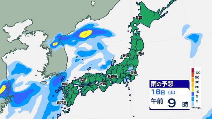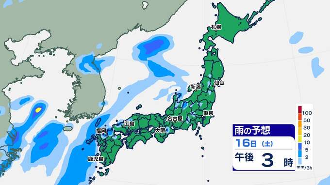 場合によっては、現在雨が予想されていない地域でも雨になる可能性があります。