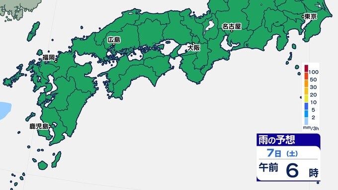 7日(土)には、九州から雨が降り出し、8日(日)中心に大雨のおそれがあります。雨域は九州から中国四国、近畿、東海と次第に広がり、9日(月祝)は、雨の中心は関東地方となる見込みです。