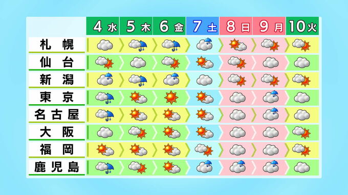 【3連休は秋雨前線活発化】九州~近畿・東海・関東など太平洋側大雨か…西から雨広がる【雨・風シミュレーション9日(月)まで】 2023年10月5日(木) 09:44 国内 いよいよ「燃ゆる感動かごしま国体」開幕、10月7日(土)の予報は?