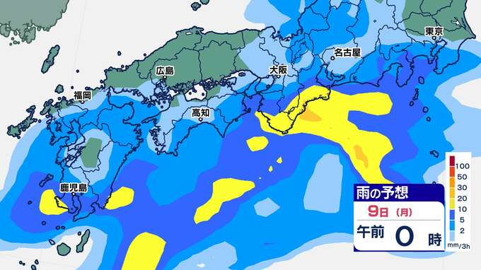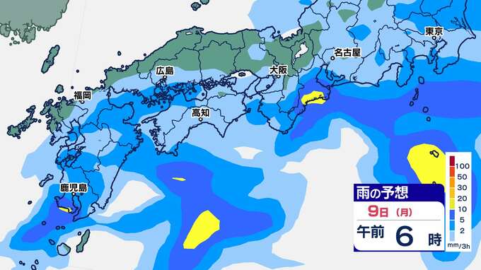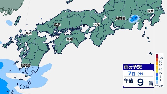 7日(土)~9日(月)にかけて、九州から雨域が広がり、九州から関東にかけて、主に太平洋側の地域で大雨のおそれがあります。