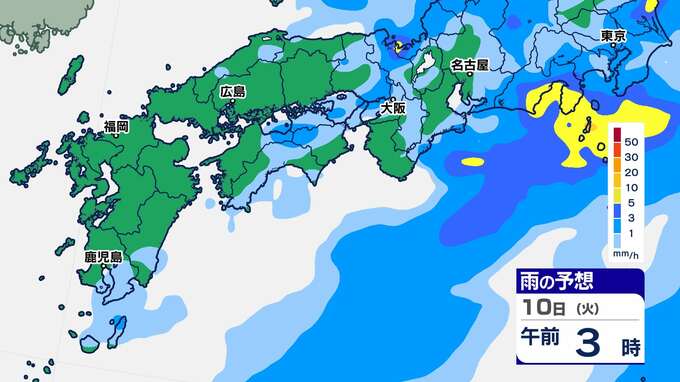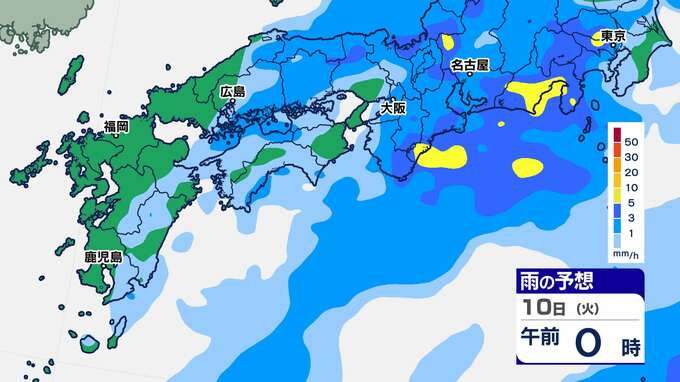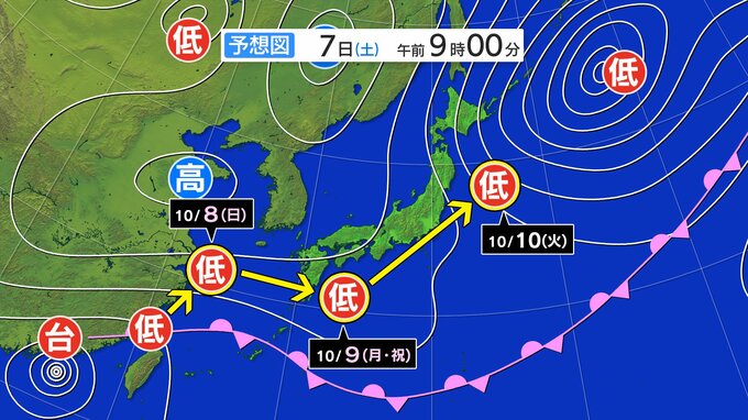 さらに低気圧は、9日(月・祝)から10(火)にかけて本州の太平洋側を進む予想で、雨の中心は関東地方となる見込みです。