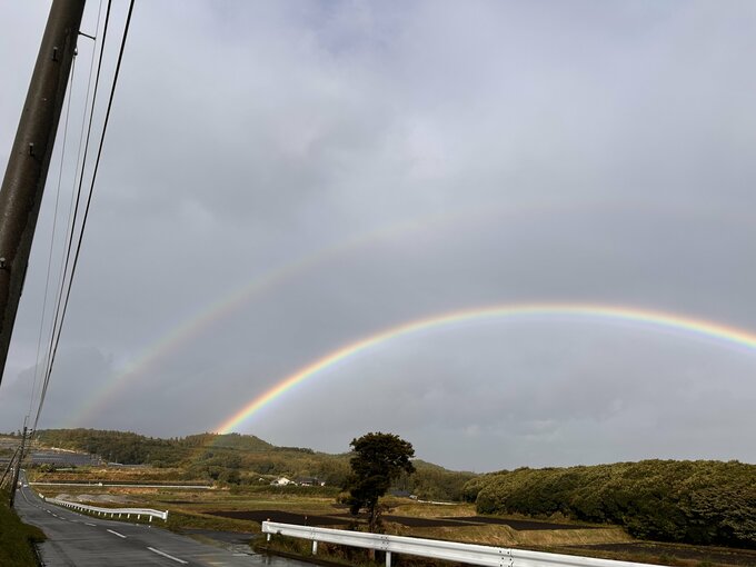 続いては鹿屋市高須町から。「仕事の合間に虹を撮影しました。幸運の印でもあるダブルレインボーを撮影しました。虹の根元までくっきりと見えましたので投稿させていただきました。」とのことです。