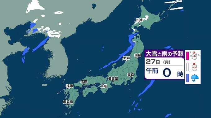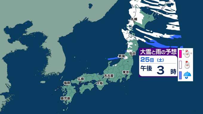 ■大雪・雪・雨のシミュレーション 25日(土)~27日(月)北海道・東北・北陸は吹雪のところも