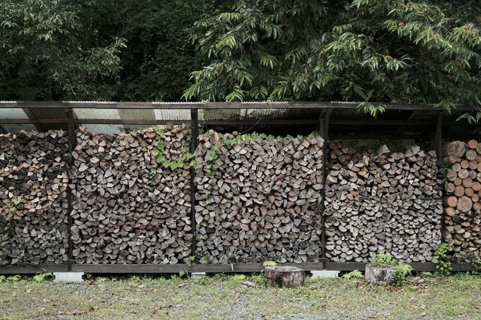 宿の庭に積み上げられた薪が、時の集積を示している。「宿も充実させたい。要望の多いカフェも考えたい」けれど、と林さん。頑張りすぎて、宿やカフェをやめてしまったケースも見てきた。「人間らしい生活を送り、生きる力は確実に高まった。会社員時代は恵まれていたと改めて思うこともある。楽しい生き方をしていると思う一方、もがいている部分もあります」。