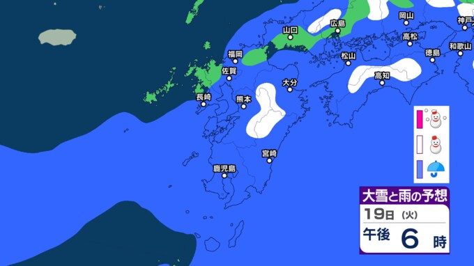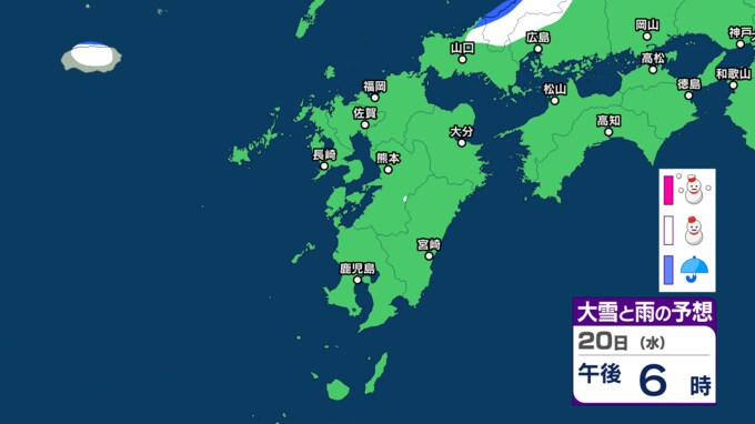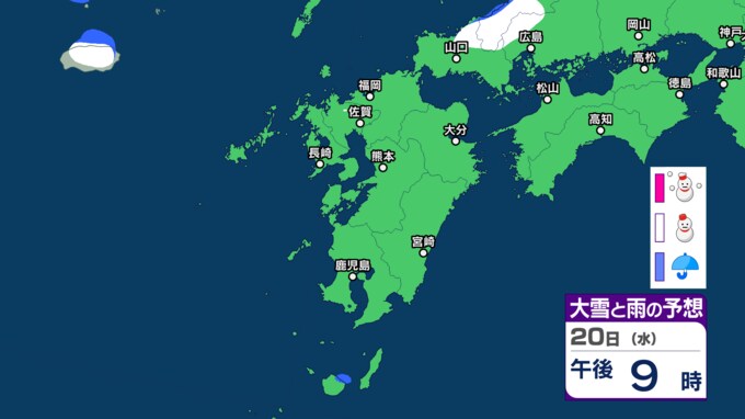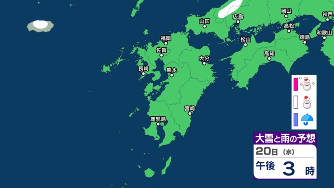 九州北部地方では、21日から22日頃にかけて、上空約1500メートルに平年よりおよそ10度低い氷点下12度以下の強い寒気が流れ込み、平地、山地ともに大雪となるおそれがあります。