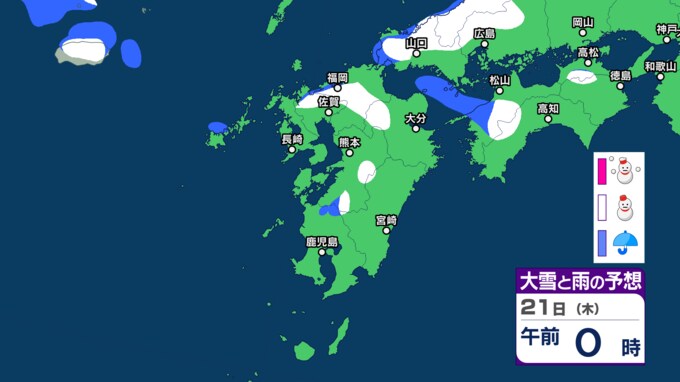 ■九州北部地方 21日~22日頃 平地、山地ともに大雪のおそれ