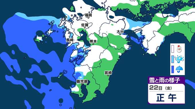 このため、九州北部地方では、22日夕方まで平地、山地ともに大雪に注意してください。