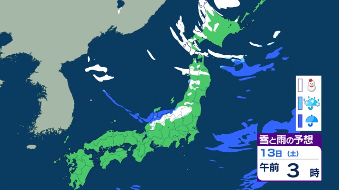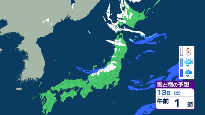 青森県では、13日朝から夕方にかけて、大雪となる所がある見込みです。12日18時から13日18時までに予想される24時間降雪量は、多いところで