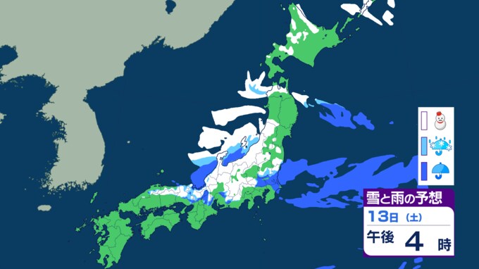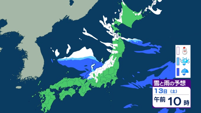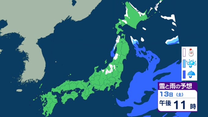 【連続画像】雪シミュレーションでは、13日に東京を含む関東甲信と、中国、近畿、北陸、東北、北海道で雪の予想も出ています。 受験会場の行き帰りの交通機関の乱れや、寒さに気を付けてください。特にシミュレーションでは13日午後4時ごろから東京でも雪が予想されています。