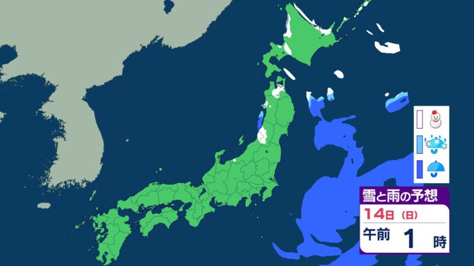 【連続画像】関東・甲信・北陸など拡大 雪シミュレーション(1時間ごと)
