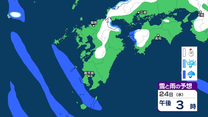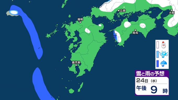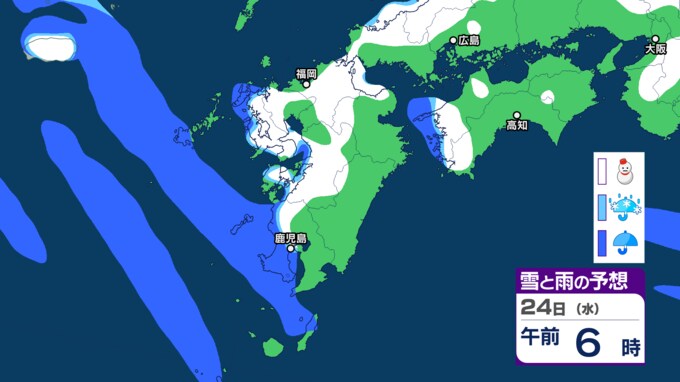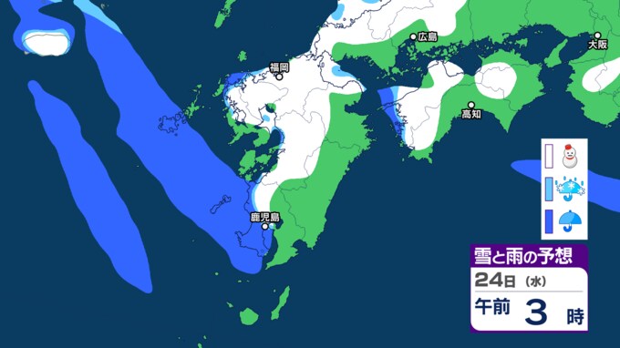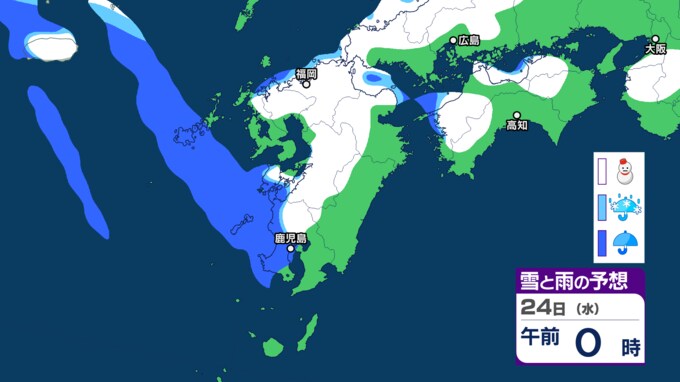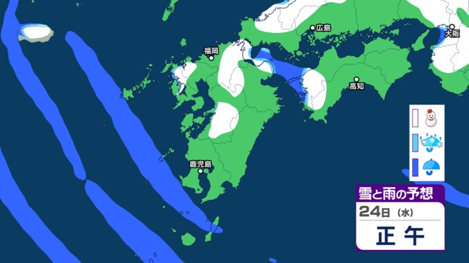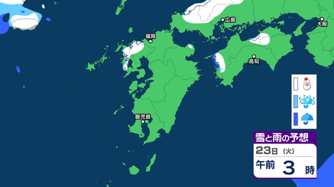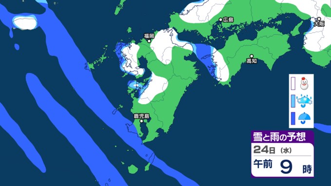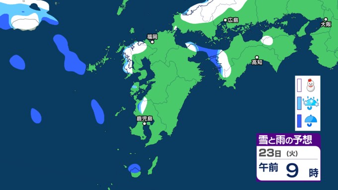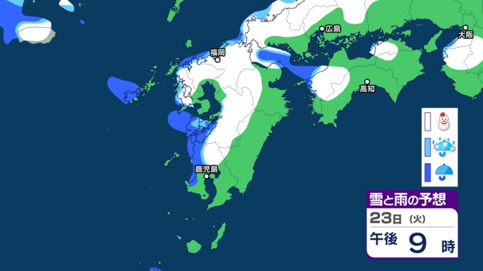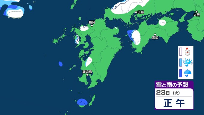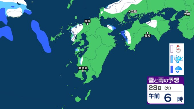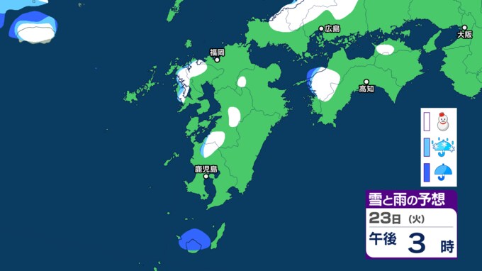 23日(火)・24日(水)は九州の広い範囲に雪の予報が発表されています。
