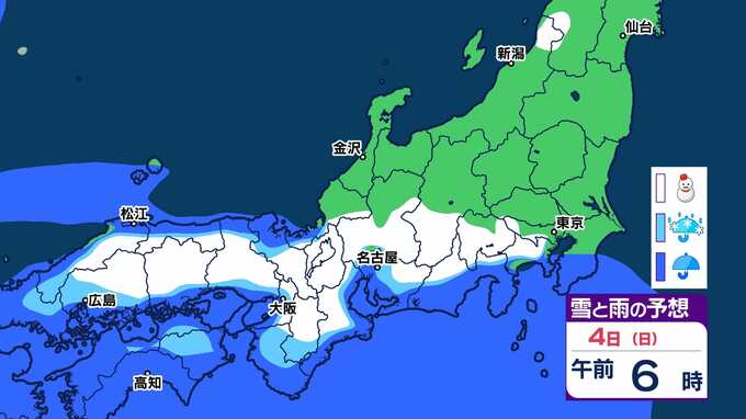 【23区でも積雪か】関東・東海・近畿 雪と雨シミュレーション3日(土)~6日(火)東京で雪が降るのか?ポイントは南岸低気圧と八丈島【雪情報】 2024年2月2日(金) 19:41 国内 天気 雪と雨のシュミレーション 4日(日)0時~