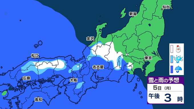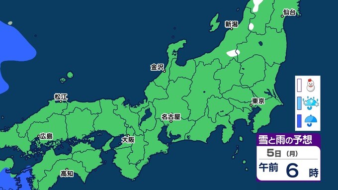 【23区でも積雪か】関東・東海・近畿 雪と雨シミュレーション3日(土)~6日(火)東京で雪が降るのか?ポイントは南岸低気圧と八丈島【雪情報】 2024年2月2日(金) 19:41 国内 天気 雪と雨のシュミレーション 5日(月)0時~