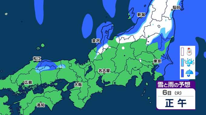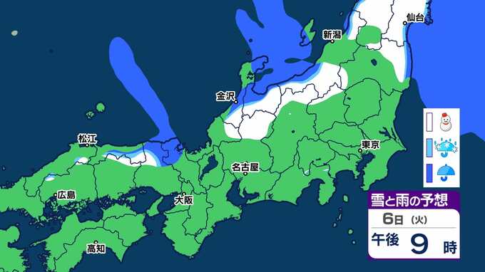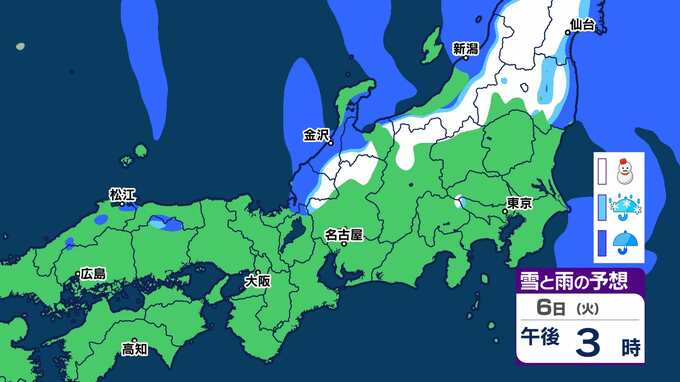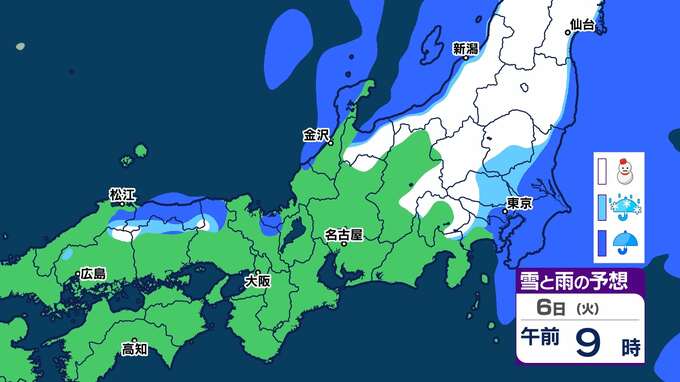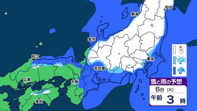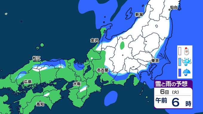 【23区でも積雪か】関東・東海・近畿 雪と雨シミュレーション3日(土)~6日(火)東京で雪が降るのか?ポイントは南岸低気圧と八丈島【雪情報】 2024年2月2日(金) 19:41 国内 天気 雪と雨のシュミレーション 6日(火)0時~