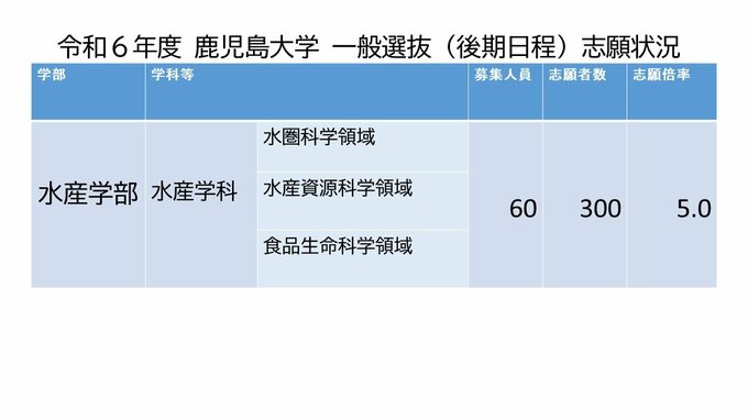 ■鹿児島大学入試 出願倍率(後期) 水産学部