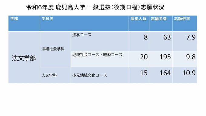 ■鹿児島大学入試 出願倍率(後期) 法文学部