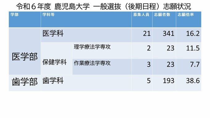 ■鹿児島大学入試 出願倍率(後期) 医学部・歯学部