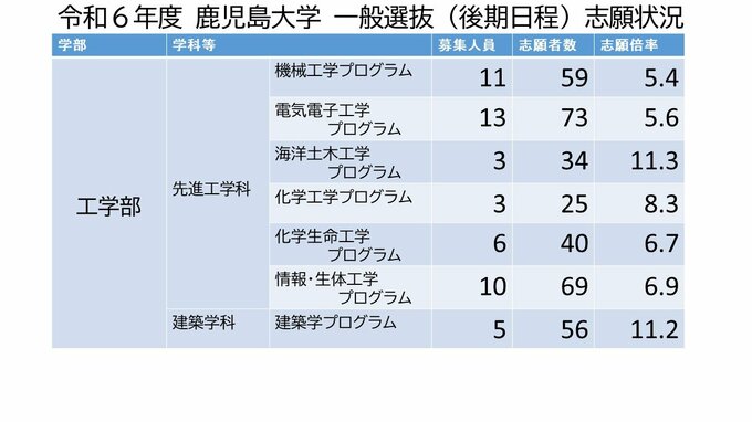 ■鹿児島大学入試 出願倍率(後期) 工学部