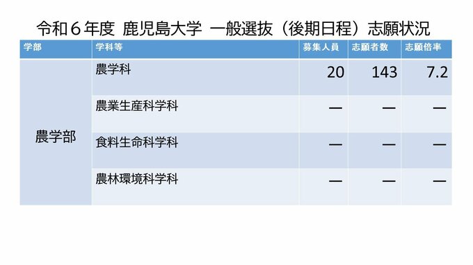■鹿児島大学入試 出願倍率(後期) 農学部