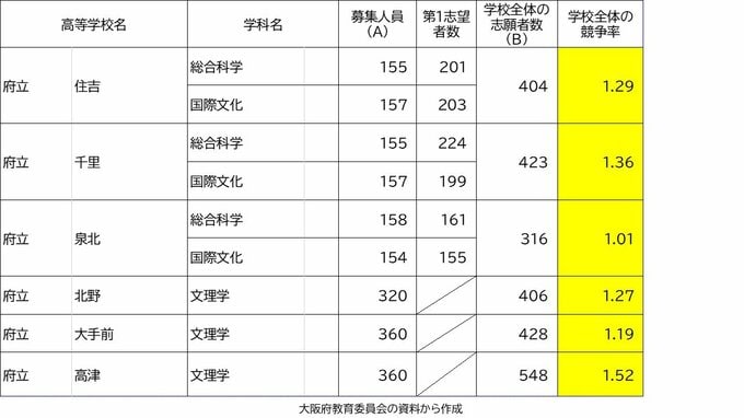 【確定値】大阪府公立高校入試2024 志願倍率は北野1.28倍 豊中1.57倍 三国丘1.47倍(令和6年度高校受験の出願締め切り 全校掲載) 2024年3月7日(木) 20:56 国内 学校別の倍率(中間値) 北野1.27倍 高津1.52倍