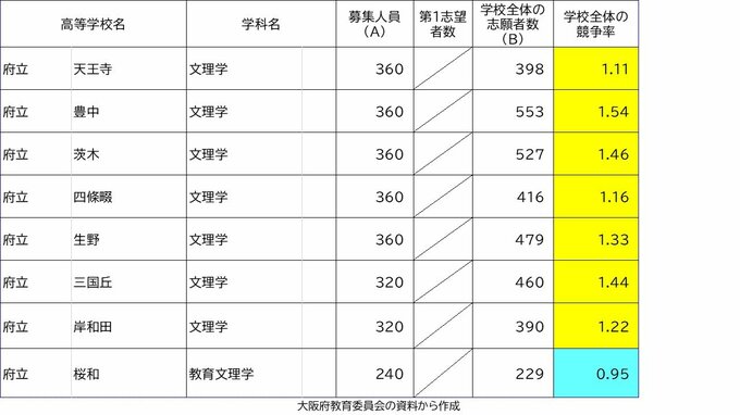 【確定値】大阪府公立高校入試2024 志願倍率は北野1.28倍 豊中1.57倍 三国丘1.47倍(令和6年度高校受験の出願締め切り 全校掲載) 2024年3月7日(木) 20:56 国内 学校別の倍率(中間値) 天王寺1.11倍 三国丘1.44倍