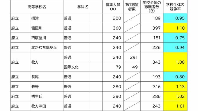 【確定値】大阪府公立高校入試2024 志願倍率は北野1.28倍 豊中1.57倍 三国丘1.47倍(令和6年度高校受験の出願締め切り 全校掲載) 2024年3月7日(木) 20:56 国内 学校別の倍率(確定値) 山田1.24倍 北千里1.18倍