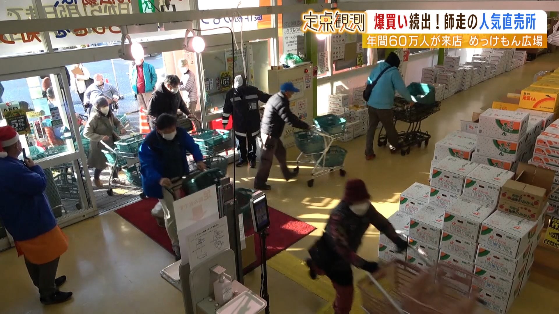 午前9時40分、店内に戻ると大量のみかんの箱を運ぶ女性がいました。お歳暮として毎年めっけもん広場からみかんを贈っているのだそうです。