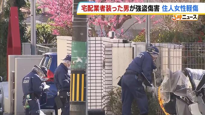 警察によりますと、3月4日午前11時すぎ、大阪府池田市五月丘の住宅で、宅配業者を装って訪問してきた男が76歳の住人の女性に刃物のようなものを突き付け、「強盗や」と脅したうえ、女性を押し倒して顔や胸を蹴るなどの暴行を加えたということです。