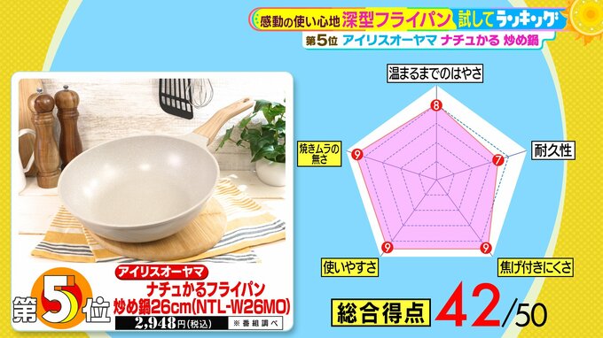 5位は、アイリスオーヤマの『ナチュかるフライパン 炒め鍋 26cm (NTL-W26MO)』(税込2,948円 ※番組調べ)。