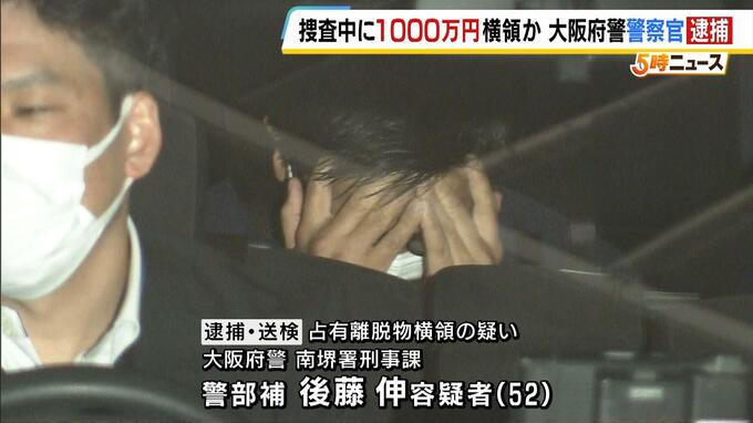 「魔が差してしまいました」捜査現場から現金約1000万円を持ち去った疑いで警部補(52)を逮捕 遺体発見現場を捜査中に…大阪府警「今後の捜査ふまえ厳正に対処」 2026年3月4日(水) 17:31 国内 捜査現場から1000万円を横領か。大阪府警の警察官が逮捕されました。 占有離脱物横領の疑いで逮捕・送検されたのは、大阪府警南堺署刑事課の警部補・後藤伸容疑者(52)です。 大阪府警によりますと、後藤…