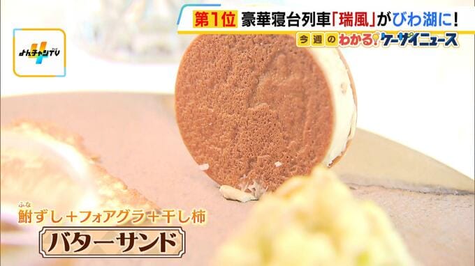 また、車内では独特のにおいや風味で知られる郷土料理・鮒(ふな)ずしとフォアグラ、干し柿を組み合わせて作ったバターサンドなど、滋賀県産の食材を使った料理を楽しむことができます。