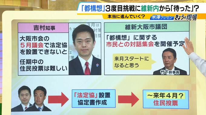 たとえ維新内部の不協和音を乗り越えて法定協議会が動き出したとしても、今度は「拙速な議論」という批判をどう回避するかが問われることになります。