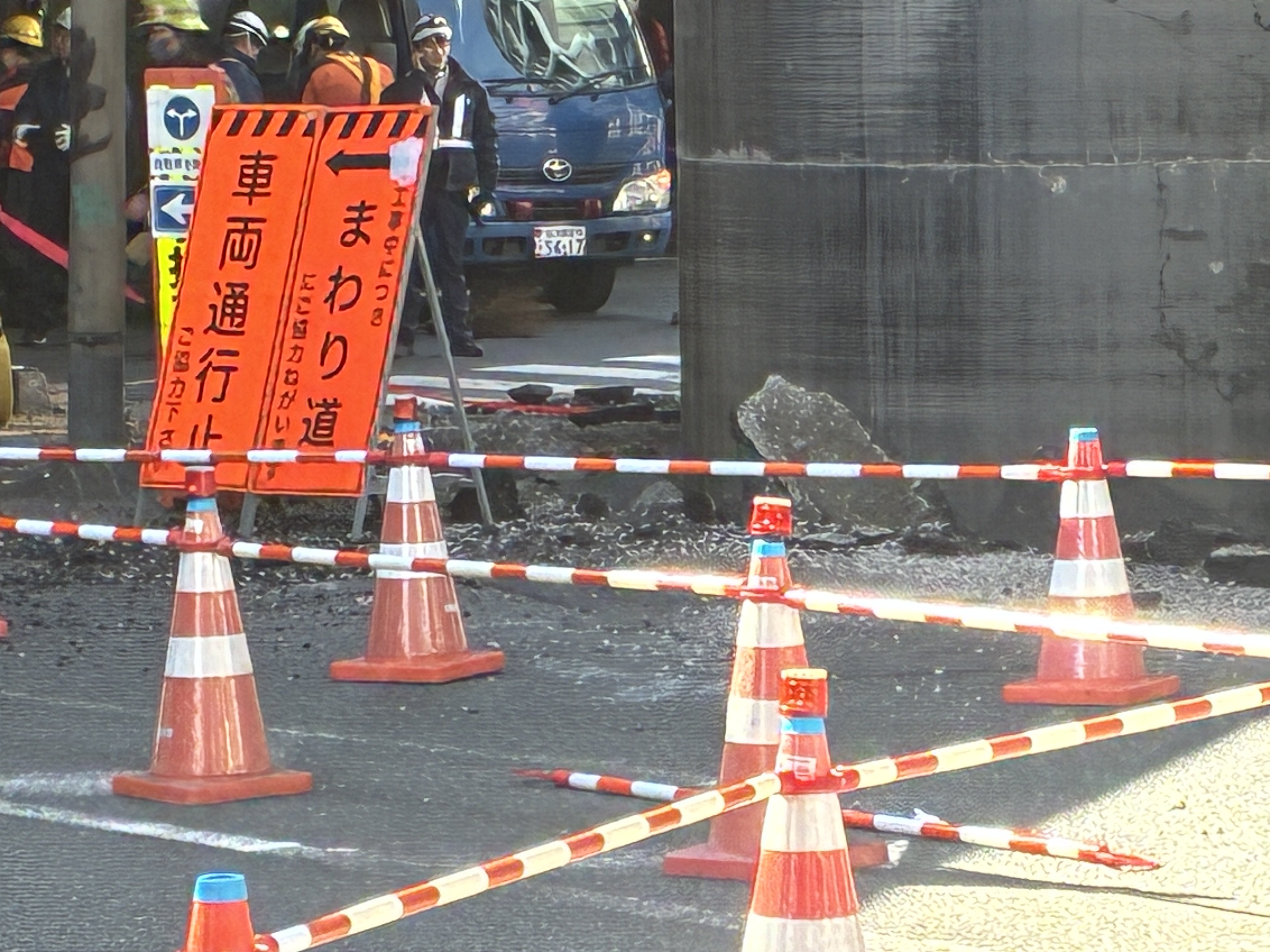 下水道工事の影響でパイプが地中からせり上がったか…「コンクリートが落ちてきている」大阪・北区 北摂と結ぶ“大動脈”新御堂筋の一部区間が通行止めで大渋滞 2026年3月11日(水) 09:41 国内 ▼地下から巨大な柱が出現? 通行止め 高架の先に見える柱は… 地面を突き破ってせり出したか アスファルトが割れている 歩道 車道とも通行止め 高さがすこし下がっているようだ