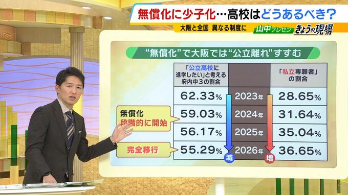 全国に先駆けて授業料の無償化を進めてきた大阪では、いわゆる「公立離れ」が進んでいると懸念されています。