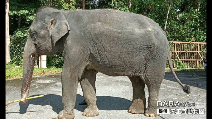 8年あまりの「ゾウ不在」解消 天王寺動物園に新たに3頭のマレーシアゾウ 検疫期間を経てお披露目へ 2026年3月13日(金) 11:35 国内 DARA<ダラ> ②DARA<ダラ> 性別:メス 保護年月日:2012年10月15日 護時年齢:1歳、現在年齢:14歳 体長:335cm、体高:230cm、体重:2165kg