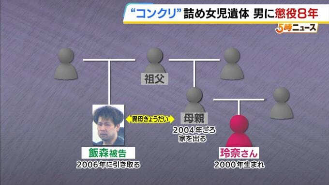 判決によりますと、飯森憲幸被告(42)は約20年前、同居していためいで当時6歳の岩本玲奈さんに暴行を加えて死亡させ、コンクリート詰めにした遺体を八尾市内の住宅に遺棄しました。