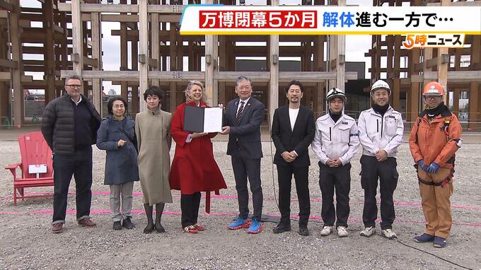 3月13日に開かれた、万博のカナダ館の「敷地返還セレモニー」。