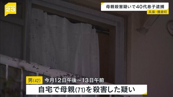 「私はお母さんを殺していません」42歳息子が同居の71歳母親を殺害か…首や腹部には複数の刺し傷など 兵庫・播磨町 2026年3月14日(土) 10:27 国内 兵庫県播磨町で同居する高齢の母親を殺害したとして、42歳の男が殺人の疑いで逮捕されました。 殺人の疑いで逮捕されたのは兵庫県播磨町に住む作業員の男(42)です。 警察によりますと、男は今月12日午後…