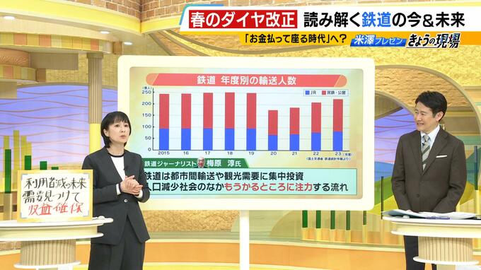 鉄道ジャーナリスト・梅原淳氏は、こうした状況について「鉄道は都市間輸送や観光需要に集中投資をしている。人口減少社会のなか、もうかるところに注力する流れ」と分析しています。